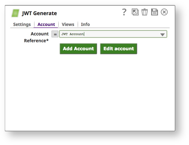 The pipeline below shows a standalone JWT Generate Snap (we define a pipeline parameter called username and there is an associated JWT Account ).