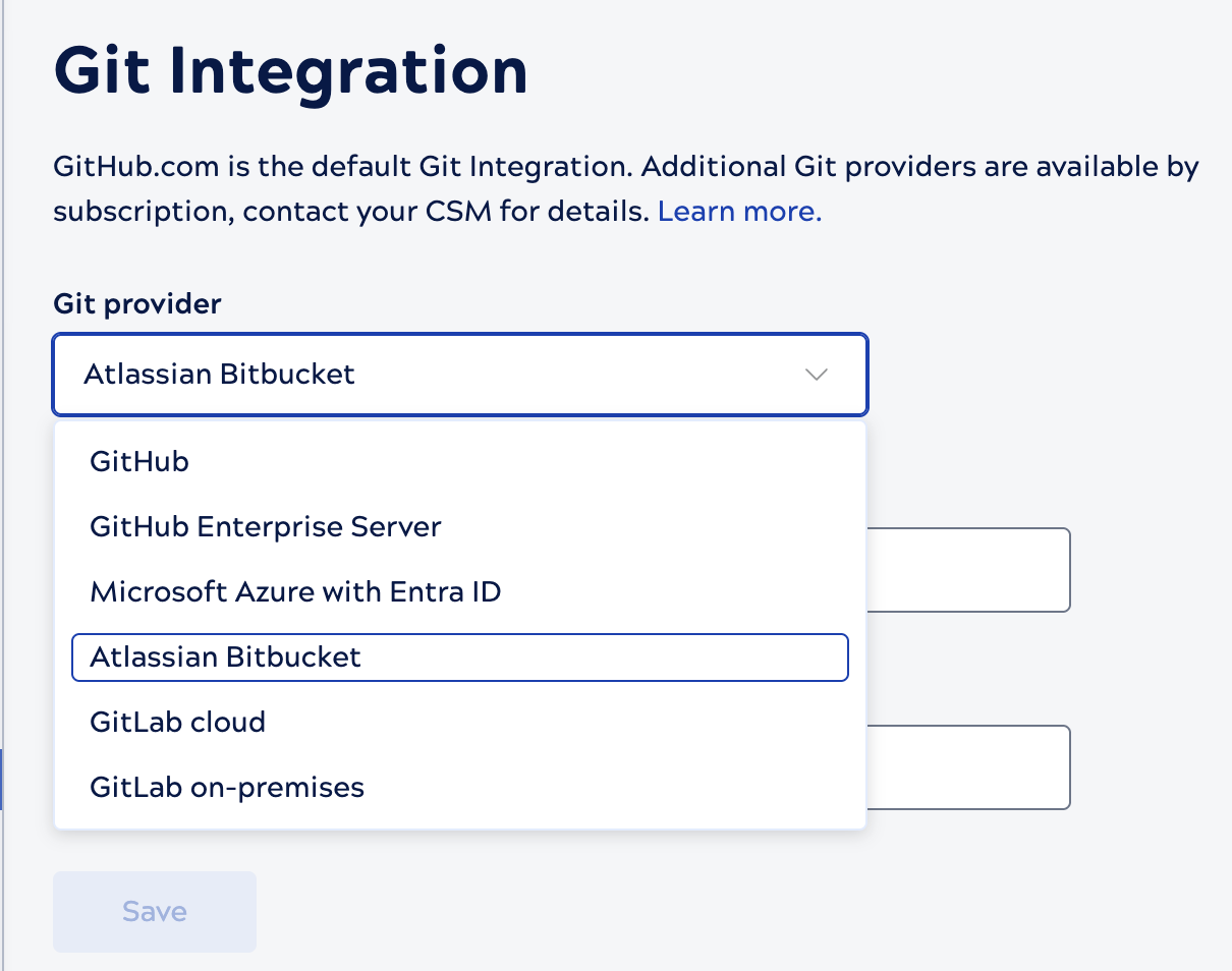 When you select a Git provider, provider-specific fields display. Refer to the following for field explanations: