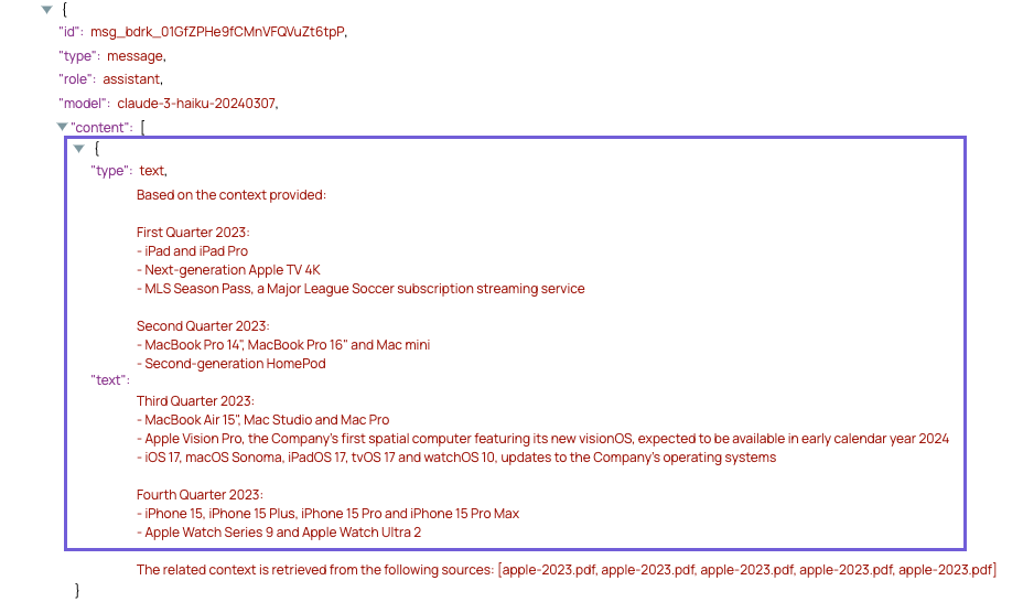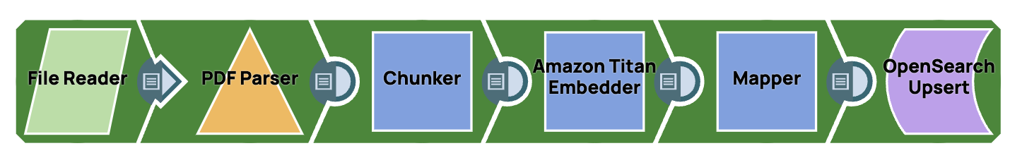 - Indexer: Loads data from the source document. This pipeline extracts text from a PDF file of a 10-K form, breaks it into chunks, generates embeddings for each chunk using Amazon Titan Embedder, and indexes the embeddings in OpenSearch vector database for context retrieval.