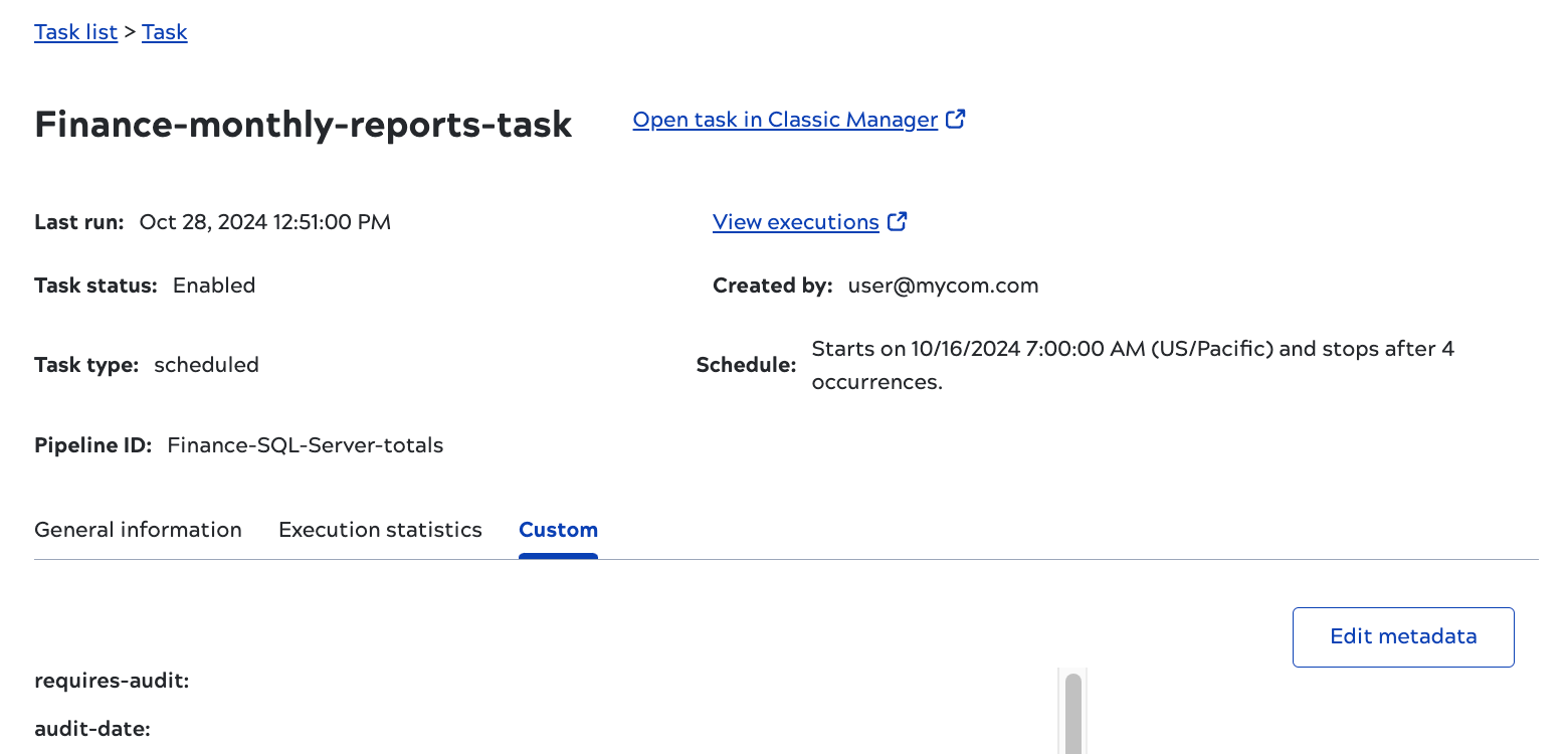 To edit custom metadata for a task: