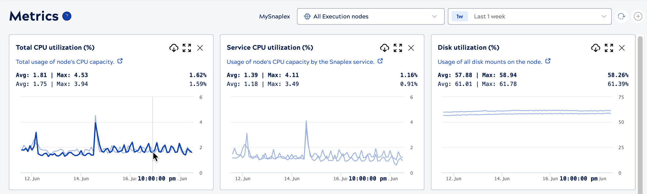 - I see CPU and memory utilization at the node level, but where do we find the Snaplex