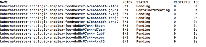 Warning: If you deploy the Snaplex JCC nodes but resources in the Kubernetes environment are not available to fulfill the Helm Chart, then your deployment goes into a pending state until sufficient resources are available. - The following sample output shows the pending status of resources: