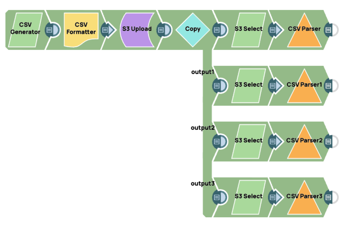 Copy the output of the S3 Upload Snap to 4 different flows using the