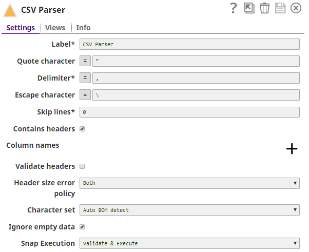 CSV Parser : Use the CSV Parser Snap with the default settings: