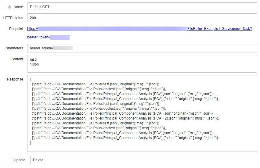 - Endpoint contains the Cloud URL concatenated with the bearer token.
