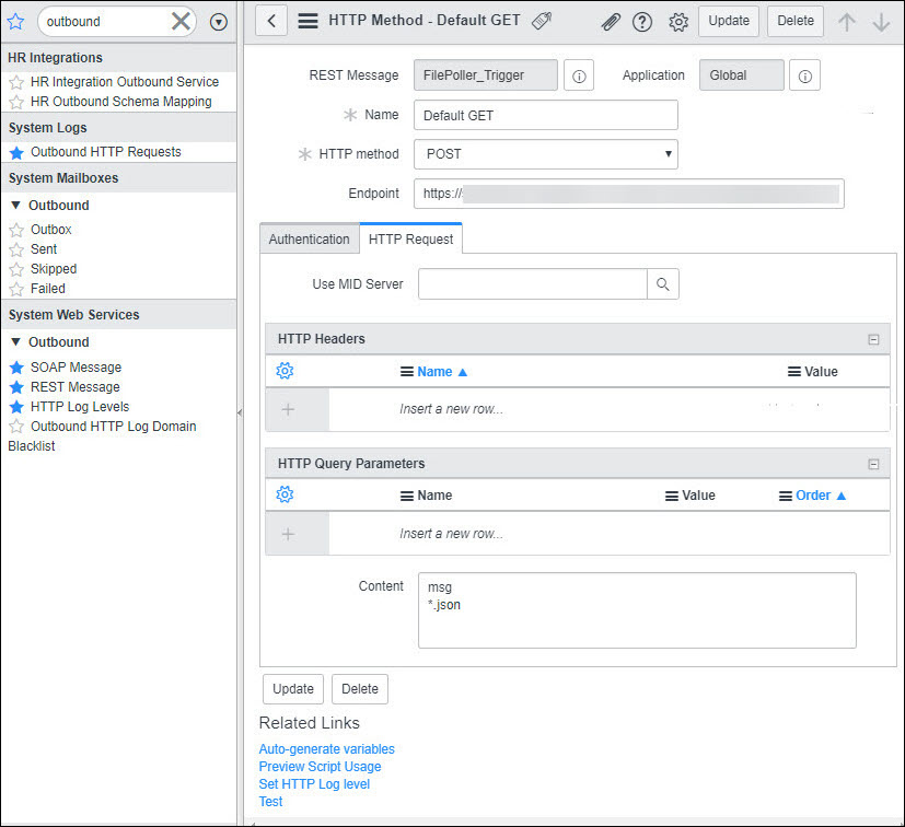For details on how to set up REST calls using ServiceNow, see ServiceNow documentation.