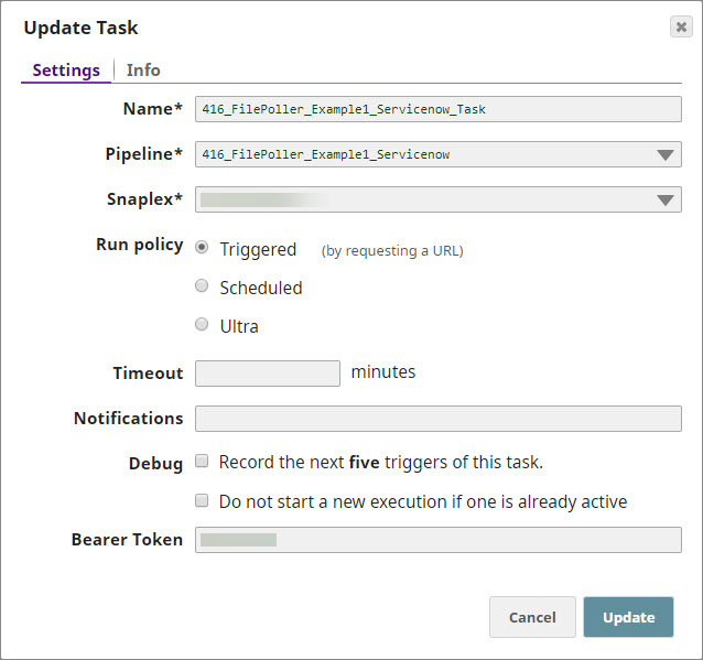 - Create a pipeline that receives specifications from ServiceNow on the file type for which you want to poll a directory.