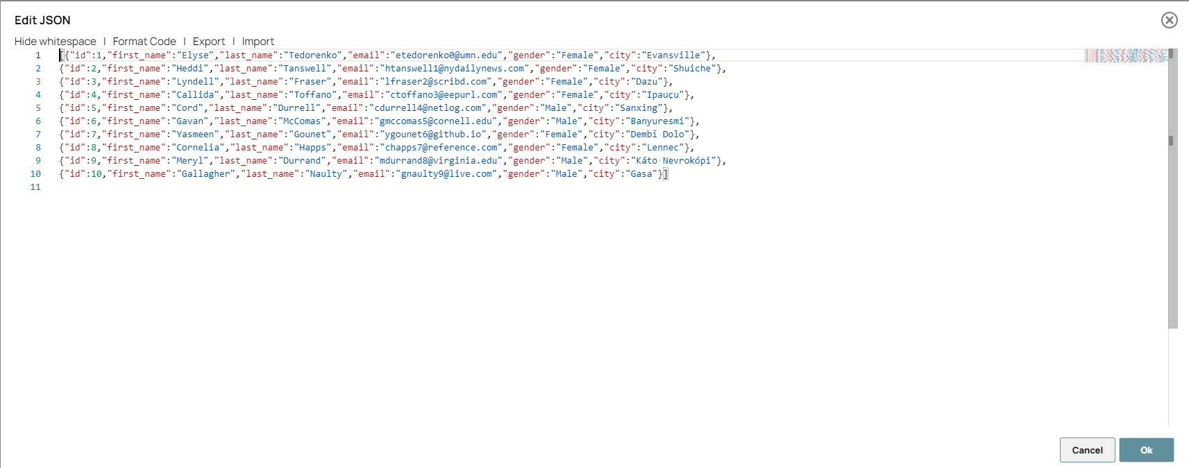 2. Configure the attributes to pass raw data in the JSON Generator Snap under Edit JSON.