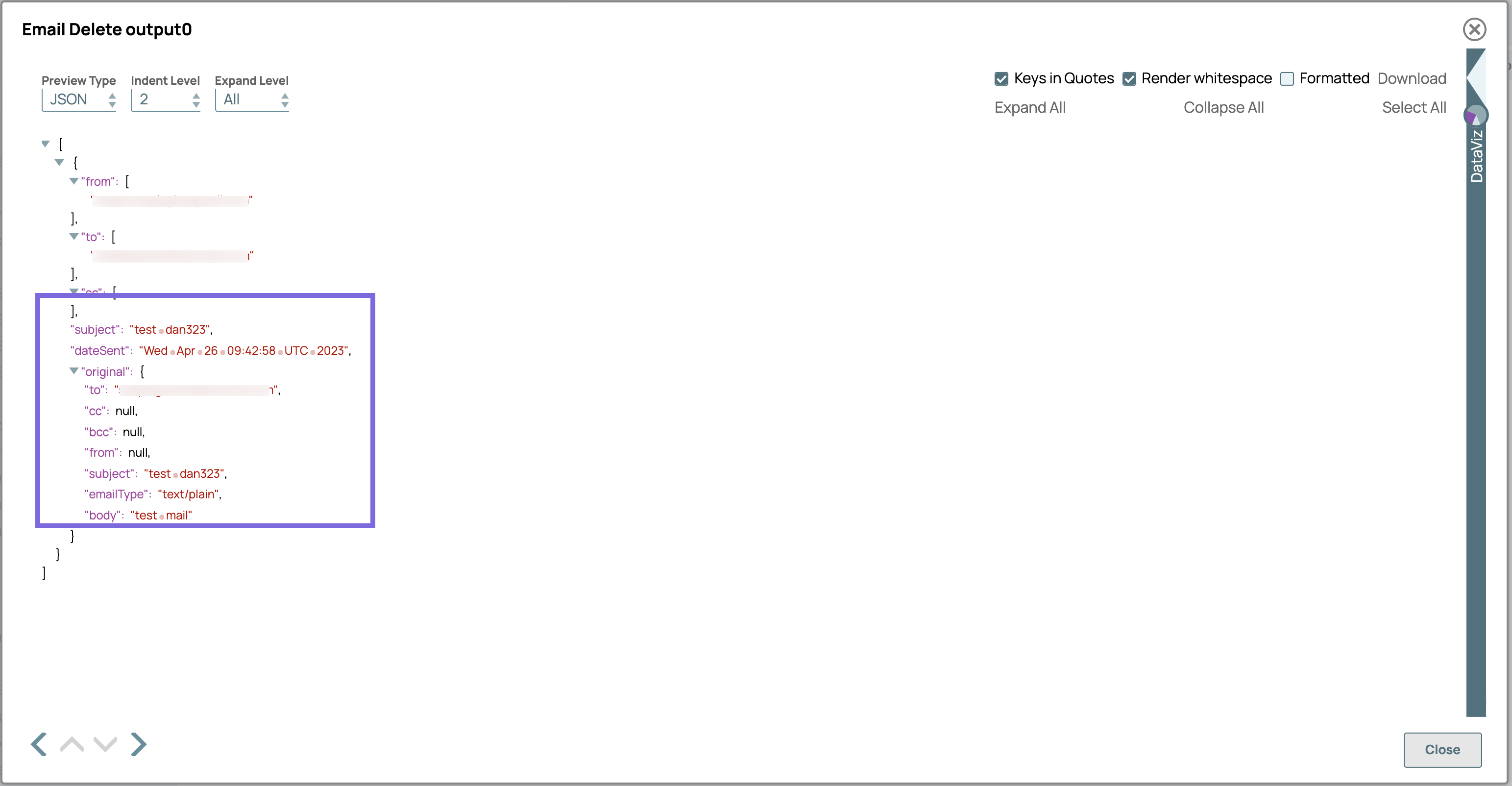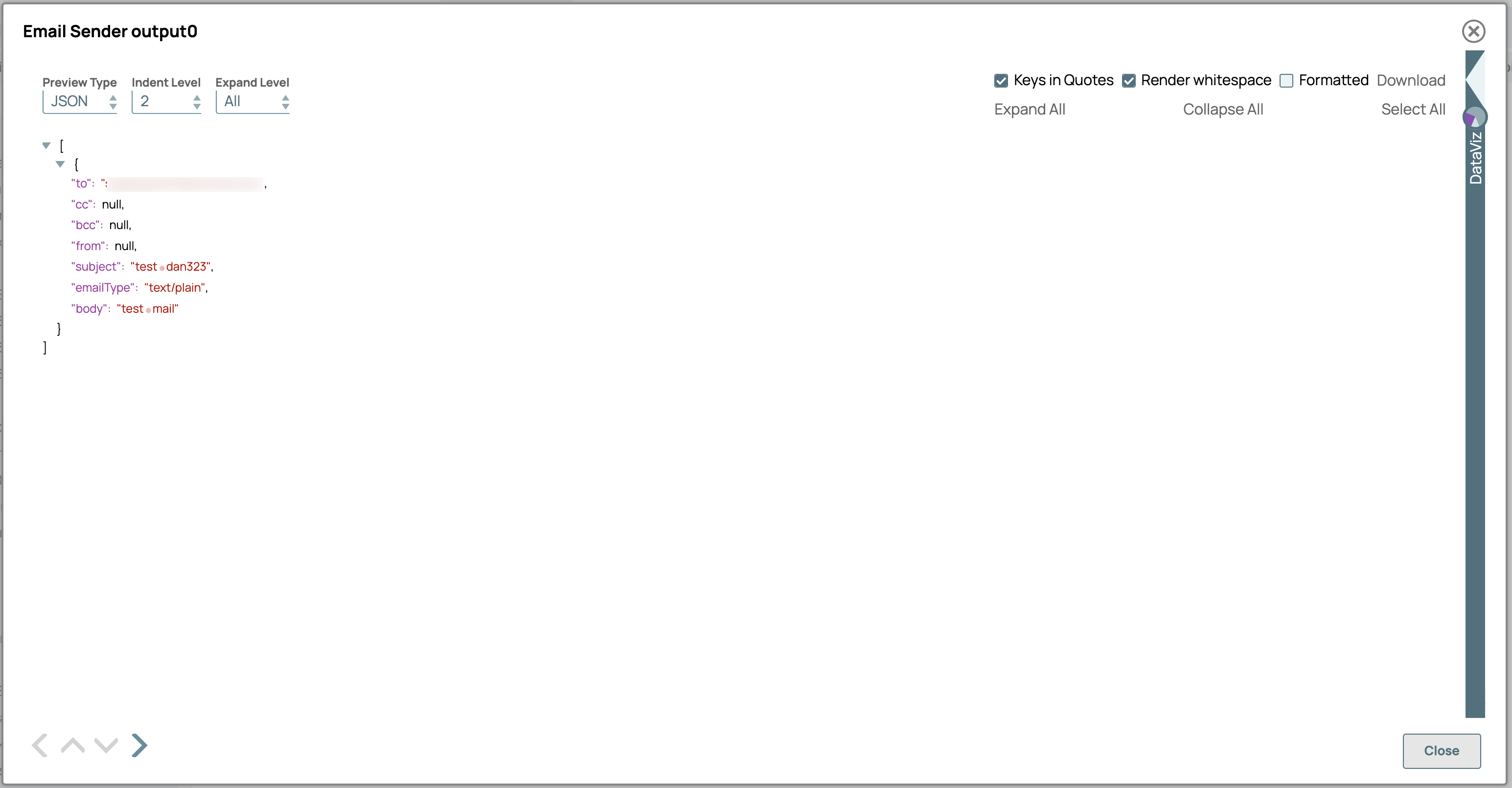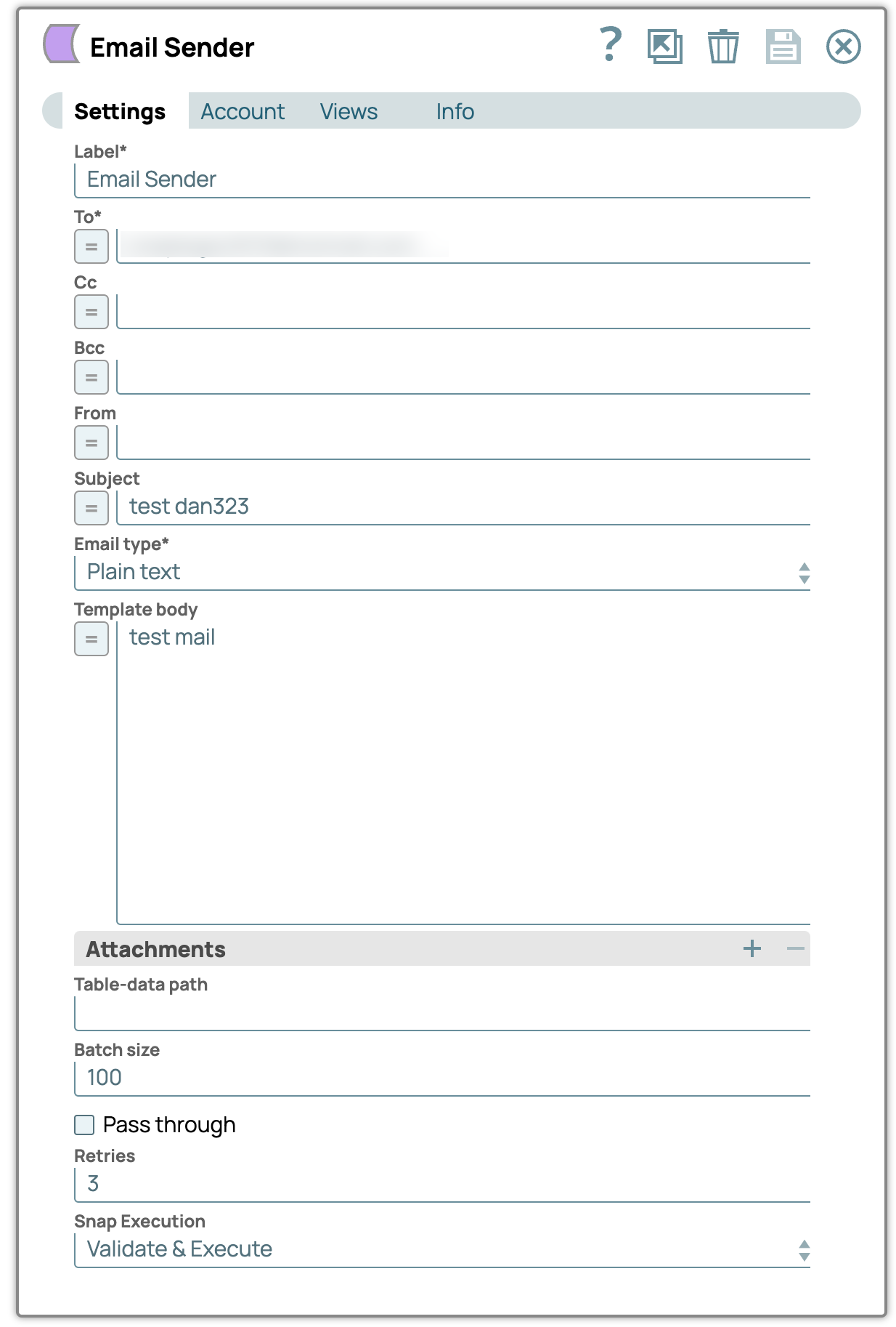 the SMTP server. On validation, the Snap displays the output with the details of the
