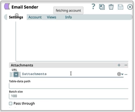In the below example, the Email Sender Snap sends an email with multiple attachments from the FILE location. The Email Sender Snap does not support wildcards in attachments to support multiple attachments. Therefore, the following Pipeline uses the Directory Browser Snap as an upstream Snap to combine multiple file paths and sends that to the Email Sender Snap.