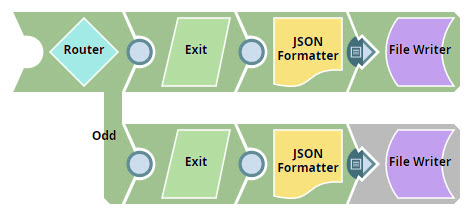 2. The Router Snap routes the incoming documents into two branches, Even and Odd.
