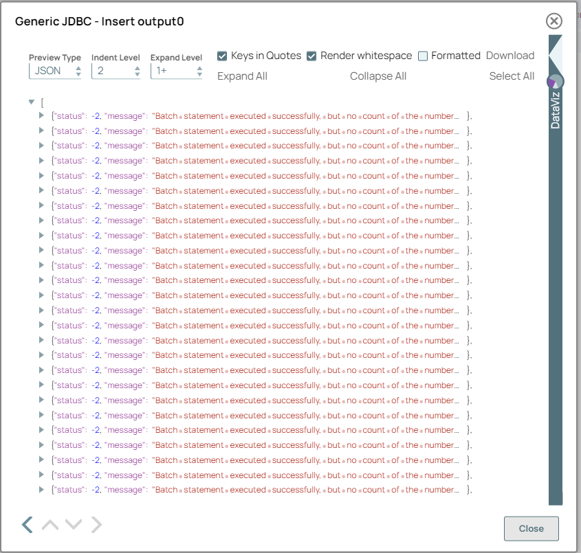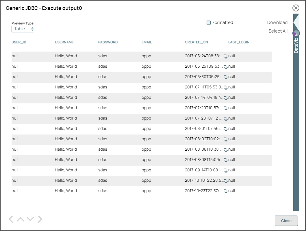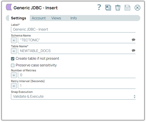 the NEWTABLE_DOCS table. On validation, the Snap displays the output with the
