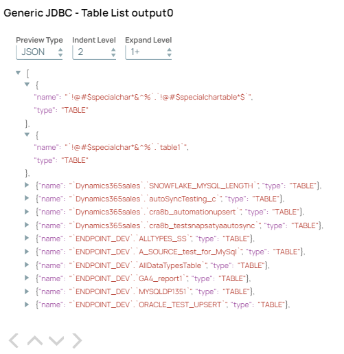 The following example pipeline demonstrates how to retrieve all the tables for the selected schema.