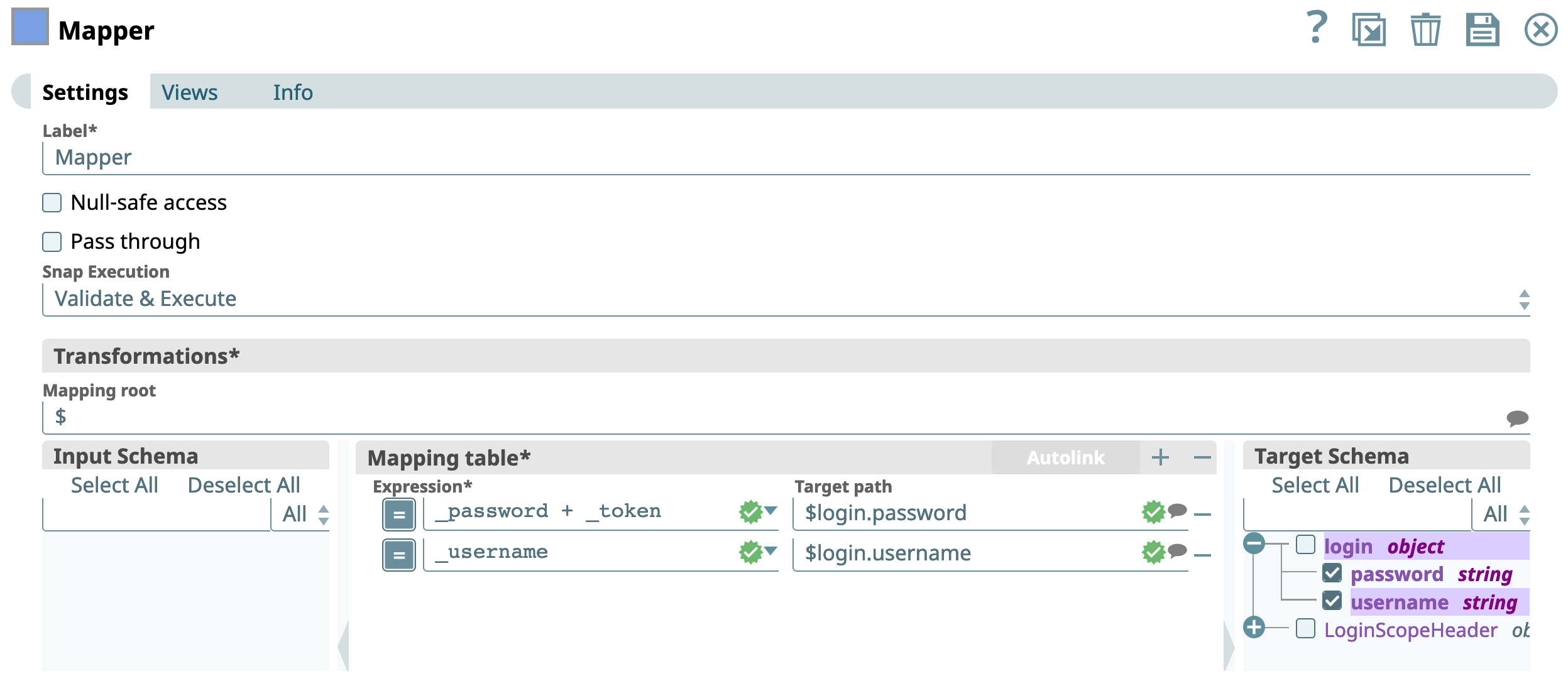 Here is the pipeline consisting a Mapper Snap and SOAP Execute Execute Snap with credentials defined as Pipeline parameters.