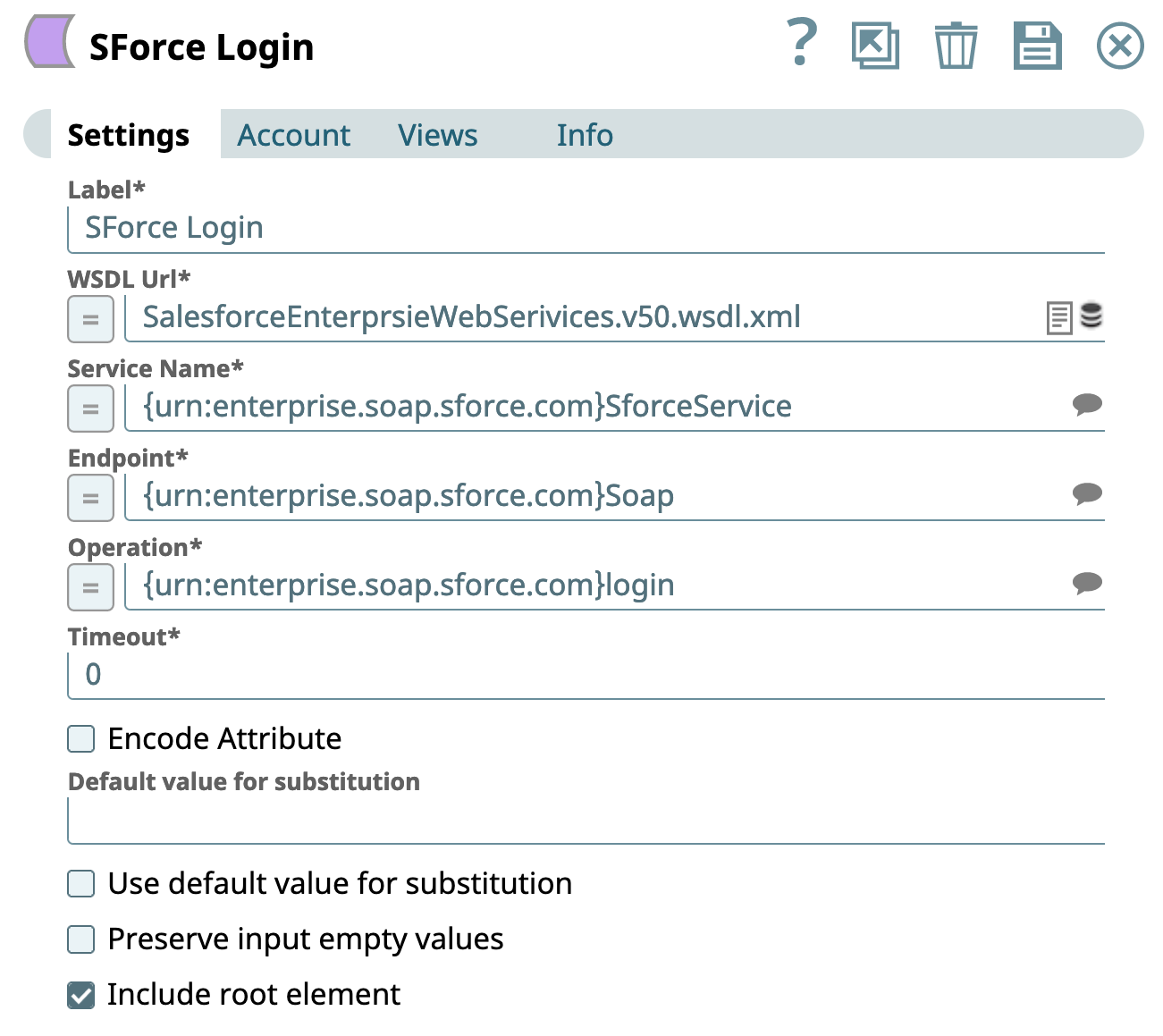 Let us take an example where we are making a call to the login operation for Salesforce's SOAP API (WSDL).