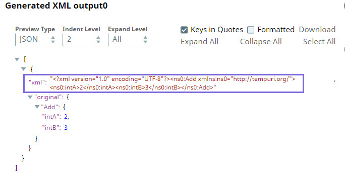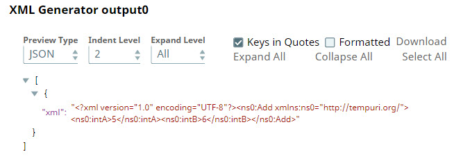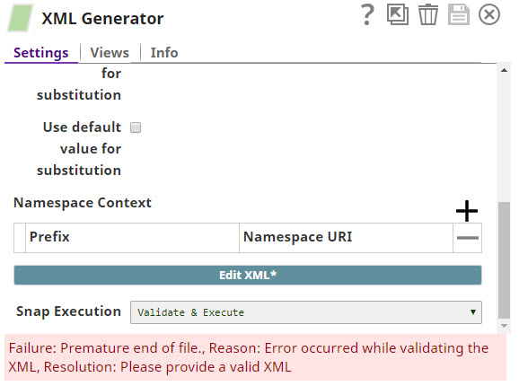 This example illustrates the corrected behavior of the XML Generator Snap as of Patch transform8760, whereby the Snap does not ignore any custom XML data that is provided through its XML editor.