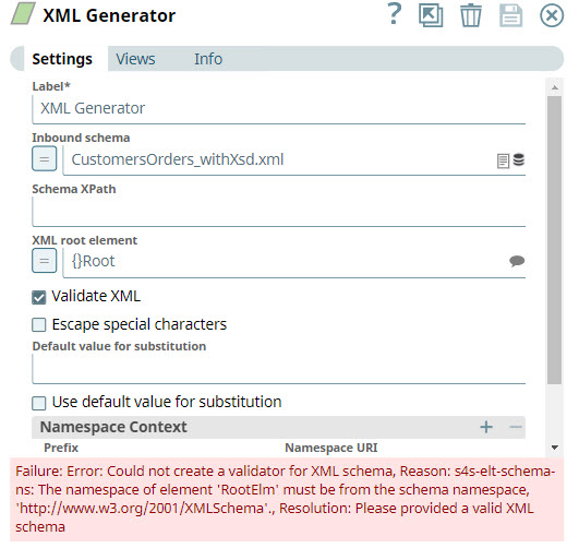 XML editor and the Pipeline is re-validated, the Snap fails with the following error: