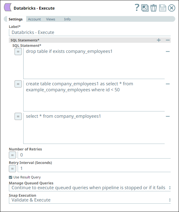 Configure the Snap (Pipeline) to run two Databricks SQL statements in a specific order