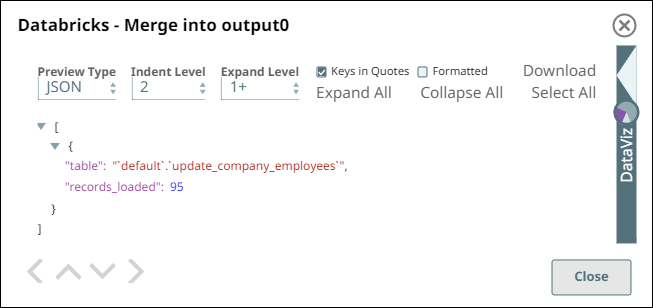 After successful validation, the Snap displays the target table name and the number of rows newly inserted in this run.