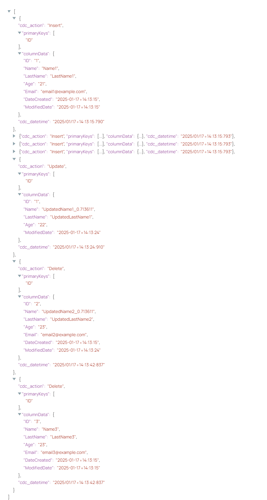 The following example pipeline demonstrates how to capture the data changes from the Insert, Update, and Delete statements executed on the EMPLOYEE table within the specified time period.