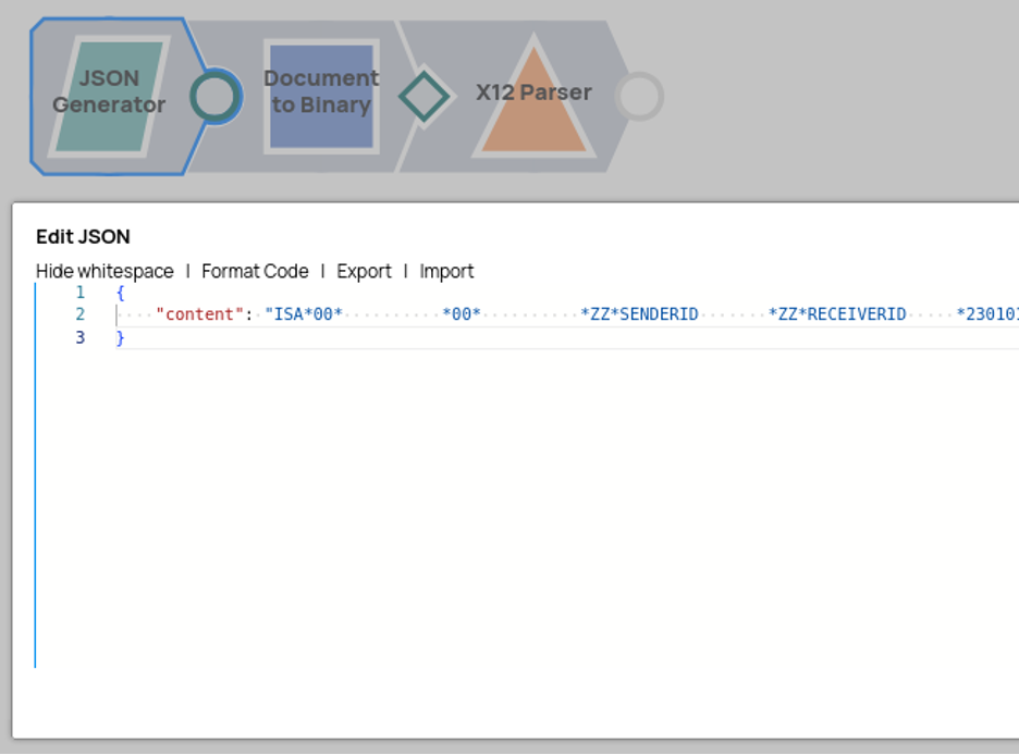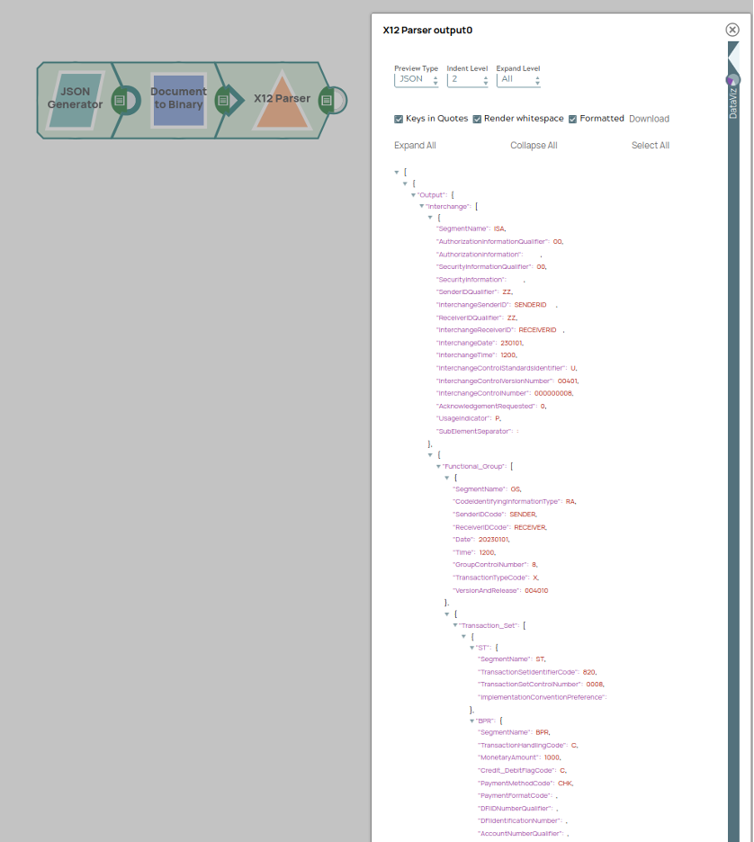 This output can then be used as direct input for the X12 Formatter without mapping fields because it