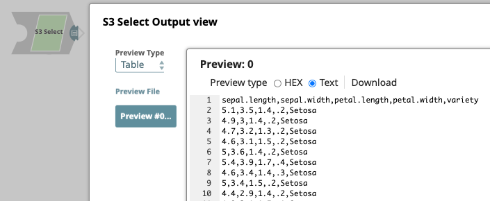 Enter a SELECT query to be executed on the S3 object. For a detailed description on using the SELECT command, refer to the Amazon documentation:SELECT command - Amazon Simple Storage Service Default value: None. Example: select * from S3Object |