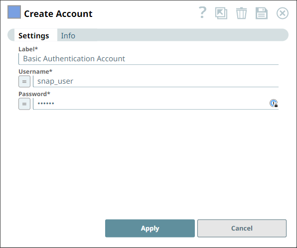 You can use this account type to connect the HTTP Client and GraphQL Client Snaps with data sources that use the Basic Authentication account.