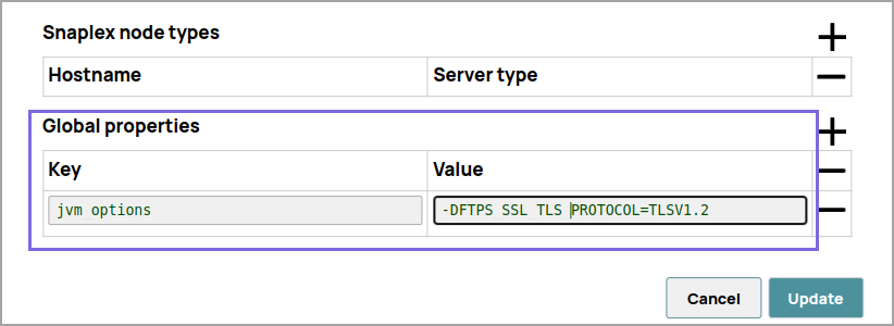 JVM option under the Global properties of the Node