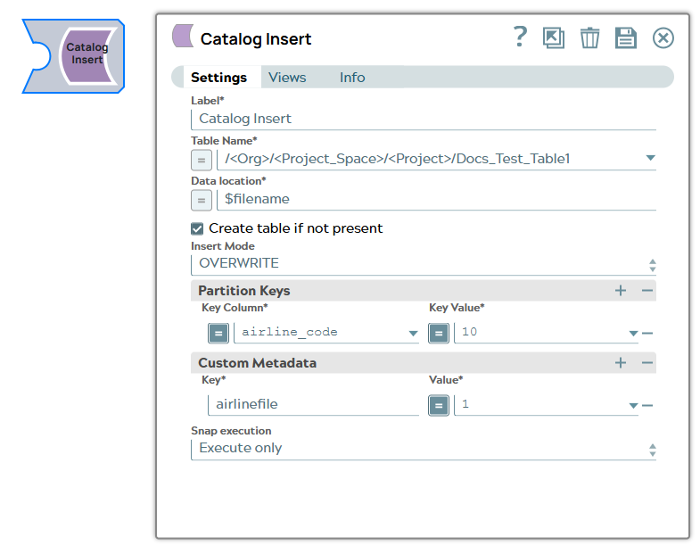 The Catalog Insert Snap enables you to enrich your metadata catalog by inserting metadata into the catalog tables.