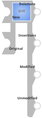 This Snap has exactly two document input views: New and Original. Ensure the first input is always New and the second input as Original in order for the Snap to display the output (insertions/deletions/modifications) in reference to the original document. |