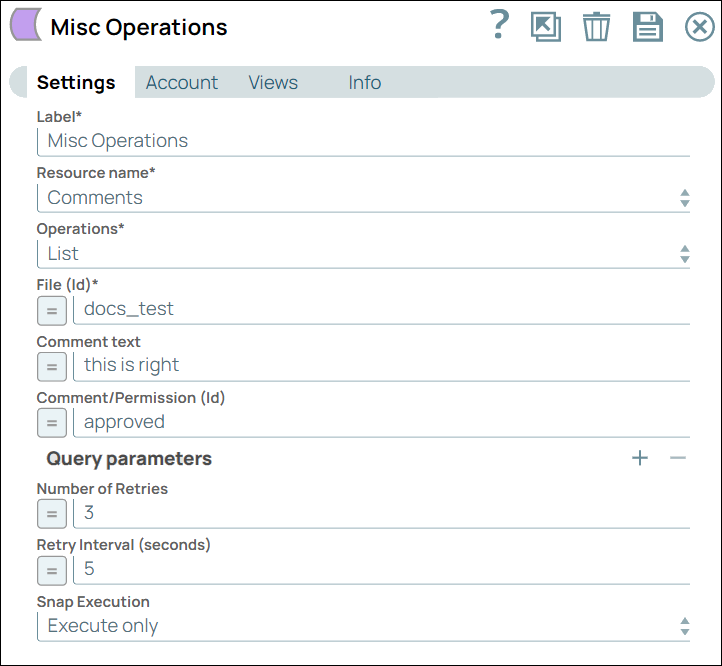 | Number of Retries | Integer/Expression | Enter the integer value to specify the number of attempts the Snap should make