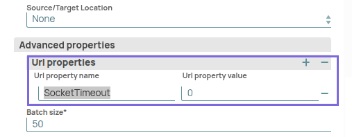 | URL property name | String | Specify the name of the parameter for the URL property. Default value: N/A Example: queryTimeout |
