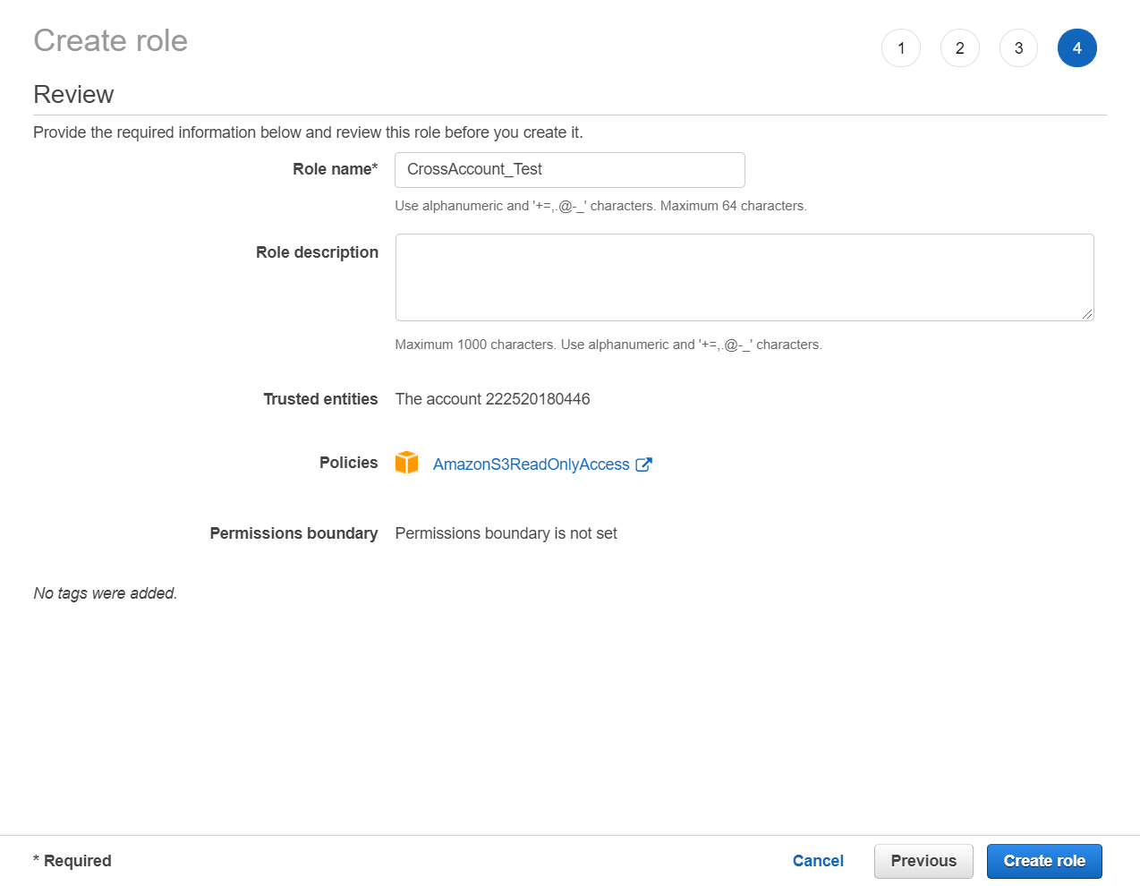 - Review the information, add a name for the role, and click Create role.