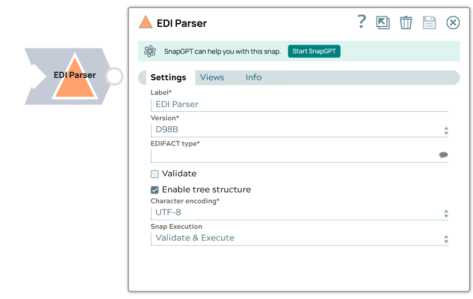 Required. Specify a unique name for the Snap. Modify this to be more appropriate, especially if more than one of the same Snaps is in the pipeline. Default value: EDI Parser |