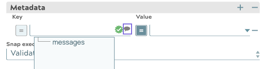 | Metadata | Use this field set to configure the metadata associated with the function result. The metadata is not sent to the model in the tool calling Snaps; instead, it is passed downstream for further use. For example, you could add a log field as metadata to pass the tool execution log downstream. Learn more about how the tool calling Snap parses the message payload. You can click