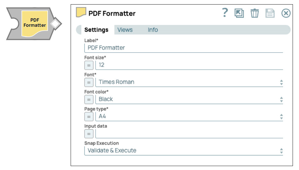 | Snap execution | Dropdown list | Choose one of the three modes in which the Snap executes. Available options