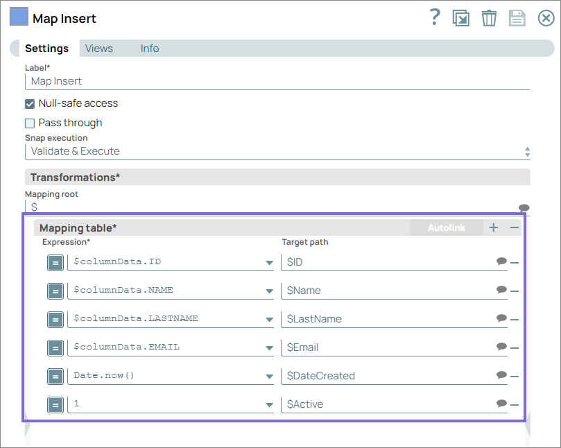 Configure the SQL Server - Insert Snap to insert