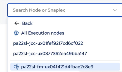 Added a new dropdown with separate sections for JCC (Execution) nodes and FeedMaster nodes. You can click on them individually, and also have the option to view them grouped together under the All Execution nodes or All FeedMaster nodes. If only one node is present, its icon is shown beside the label for clarity.