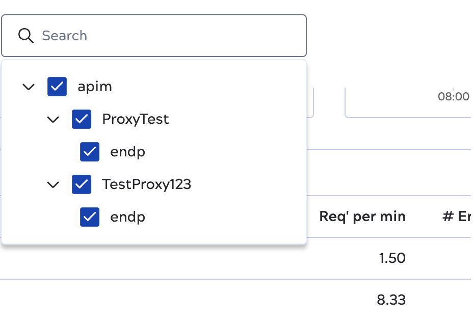 To view metrics on a specific API Versions or Proxy, type the name in the Search.
