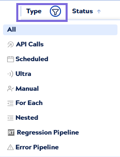 on a specific column to filter it. You can filter the Type, Status, and Project.