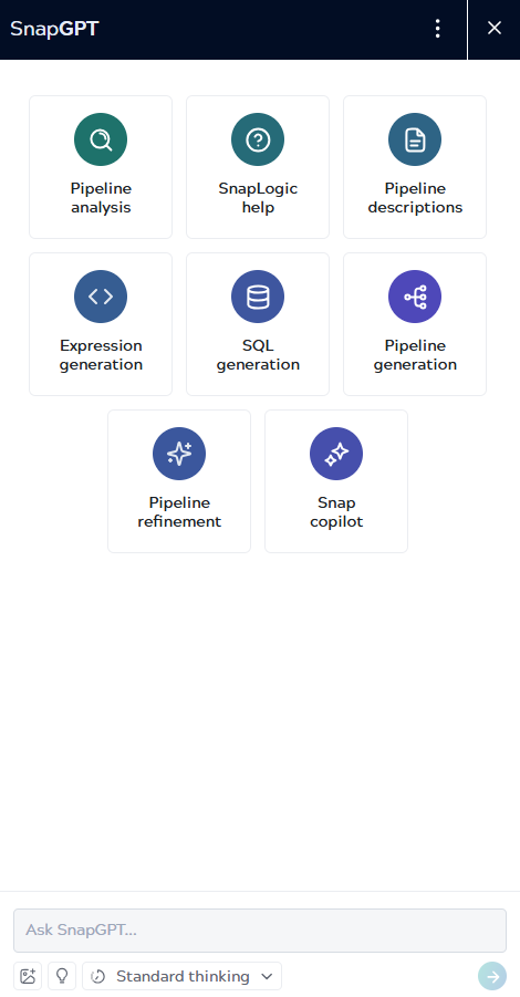 Standard thinking: Use this mode for other SnapGPT skills such as describing a pipeline and others.