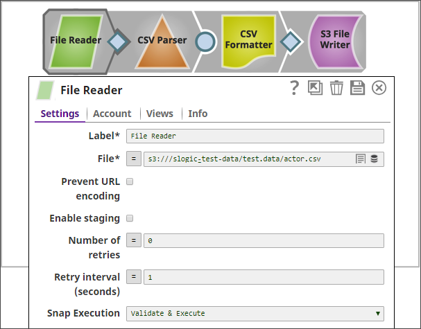 Example pipeline for an SFTP file read as shown below:
