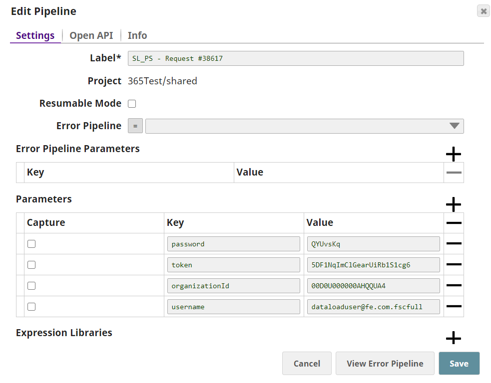 Here is the pipeline consisting a Mapper Snap and SOAP Execute Execute Snap with credentials defined as Pipeline parameters.