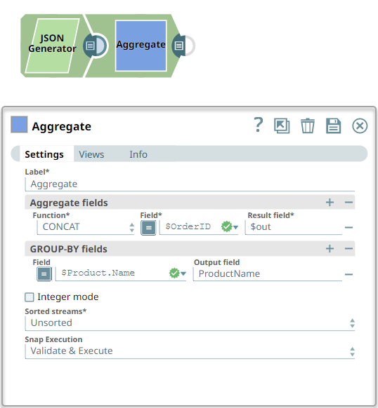 group the fields by Product names. To achieve this, configure this Snap with CONCAT