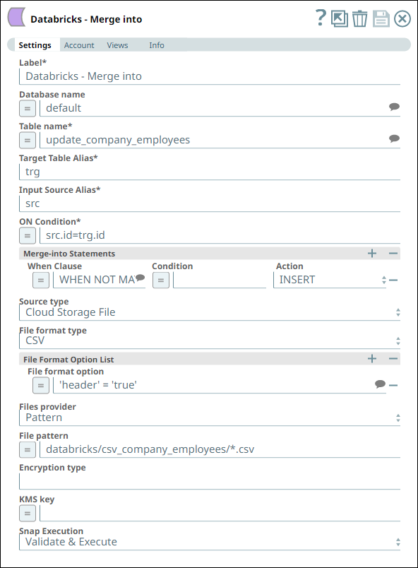 To achieve this, we can use the Databricks - Merge Into Snap.