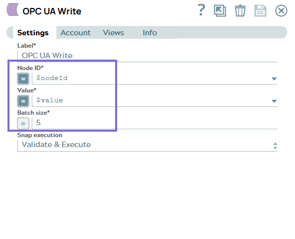 to specified OPC UA nodes using the Node ID and Value from the upstream JSON input.