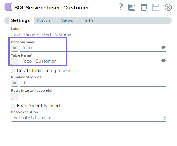 Configure the SQL Server - Insert Snap to insert